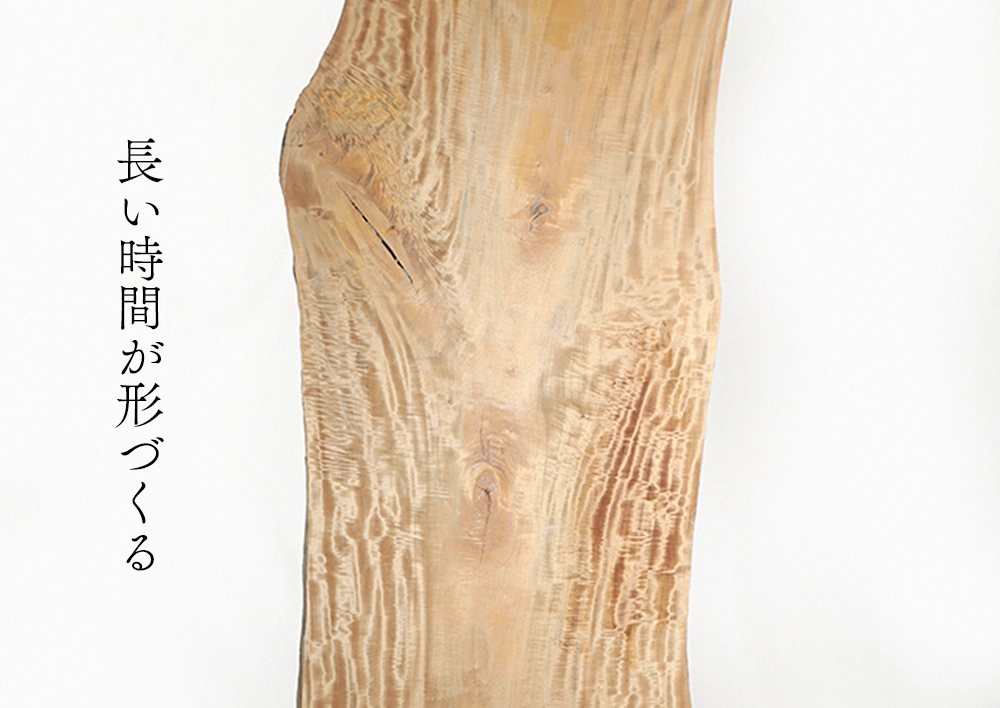 しかし、銘木(めいぼく)と呼ばれる特殊木材には、古木ゆえの傷や染みが残ります。