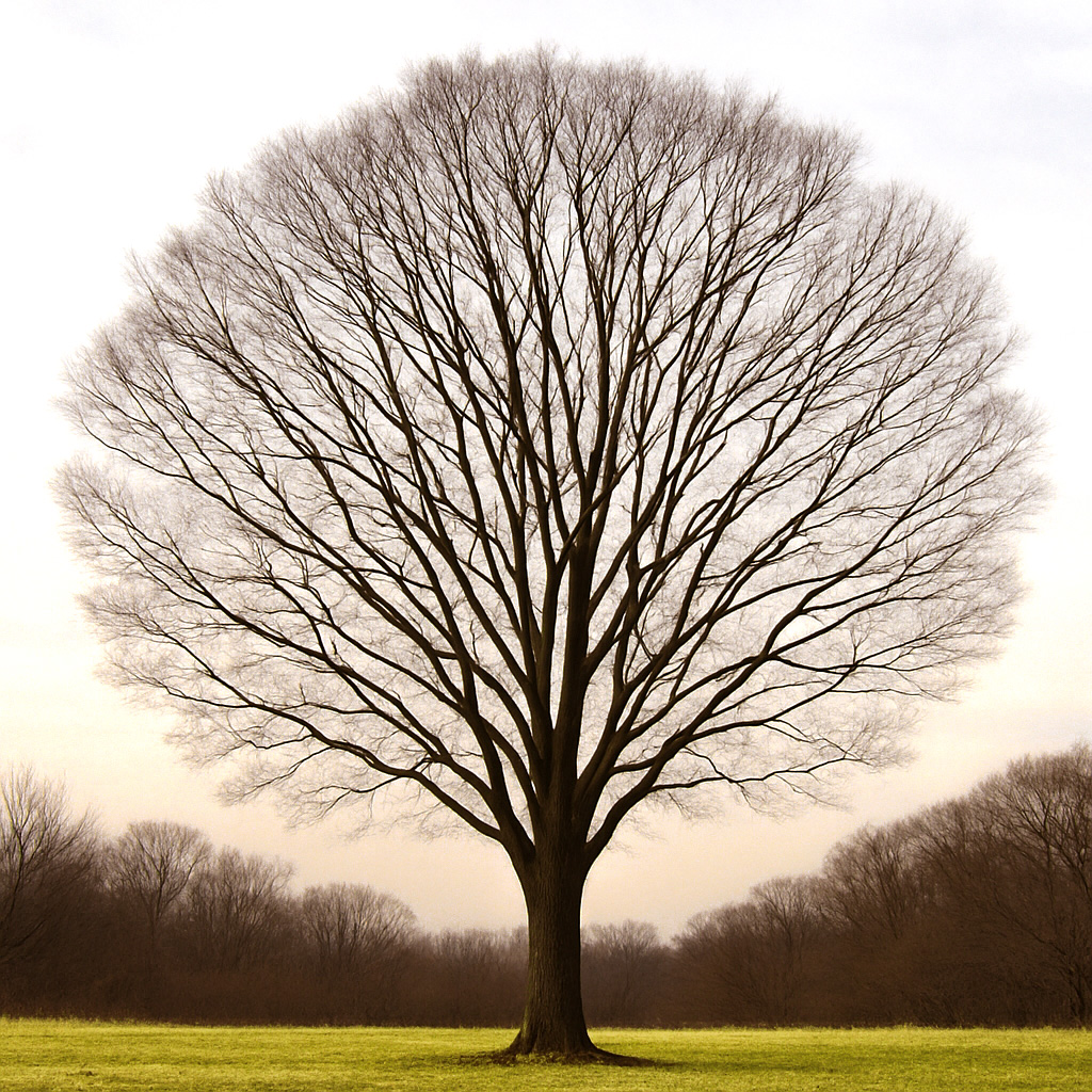 樹形はしばしば「箒を逆さにしたよう」と形容されます。逆三角形のシルエットが特徴です。