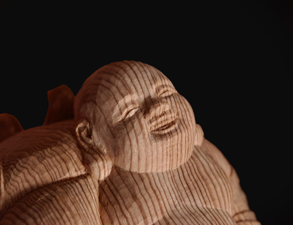 木目が導いた眉と目。木は、顔を知っている。穏やかな眼差しが、光の角度で変化する。木の中に眠っていた顔が、静かに現れる。