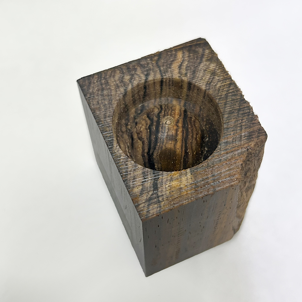 その際に、屋久杉の泡瘤の端材から直径20mmの丸玉を製作しました。