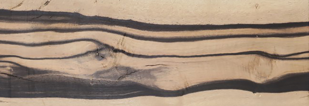 白に黒が流れるように現れ、緊張感があります。私は黒柿と似た材を見たことがありません。通常木材は単色、色味の変化があってもグラデーションの変化です。黒柿は捕食に近い色が入ら珍しい見た目です。