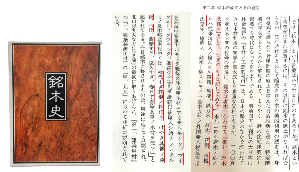 当時すでに、紫檀・黒檀・花梨などが「銘木」として挙げられています。